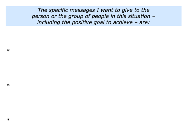 Looking ahead, how could you set a positive but realistic tone? What may be the key messages that you want to give to the person or to the group of people? What may be the positive goal you want to describe?