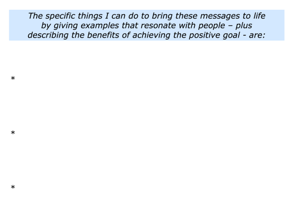 How could you bring these messages to life by giving examples that resonate with people? How could you describe the potential benefits of achieving the positive goal?