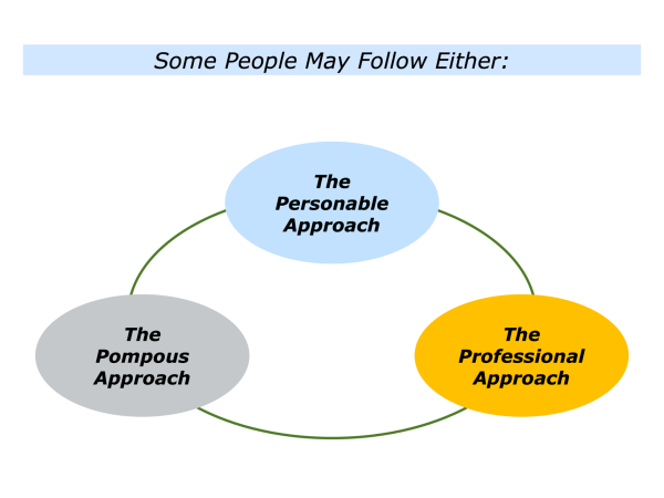 There are many ways to live life. There may be occasions when some people choose to follow either the personal, professional or pompous approaches.