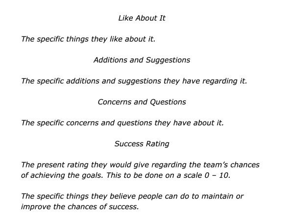 This will be followed by giving you the chance to ask questions for information. There will also be the chance to add ideas to the goals.