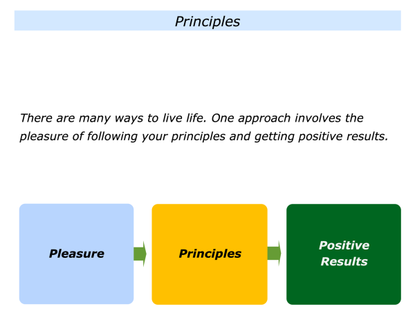 There are many ways to live life. One approach involves the pleasure of following your principles and getting positive results. This approach includes what may sound like a paradox.
