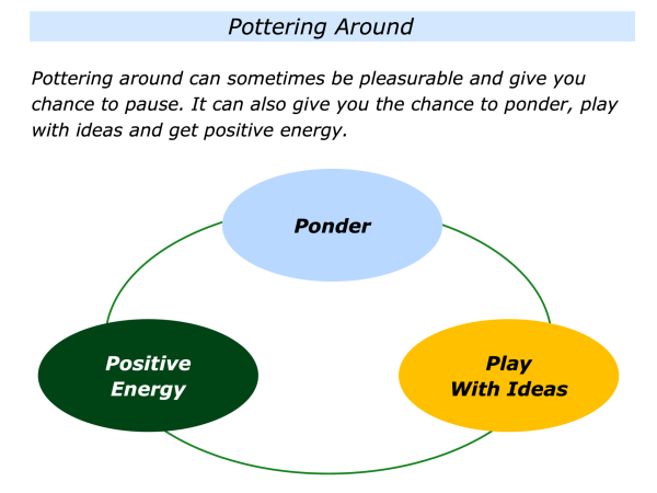 There can sometimes be benefits to simply pottering around. Some people find it can be useful to divide their day into purposeful time and, when appropriate, pottering around time.