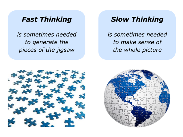 Good decision makers often set aside time to do some slow thinking. Why? Fast thinking can help to generate the pieces of the jigsaw. But slow thinking may be needed to make sense of the whole picture.