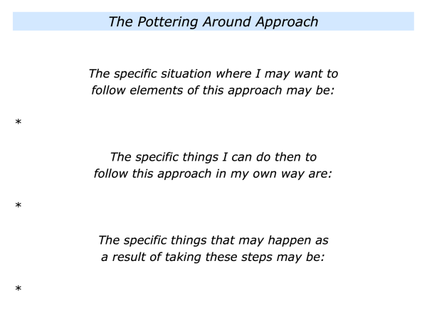Looking ahead, can you think of a situation where you may want to follow elements of the pottering around approach? How can you do this in your own way?