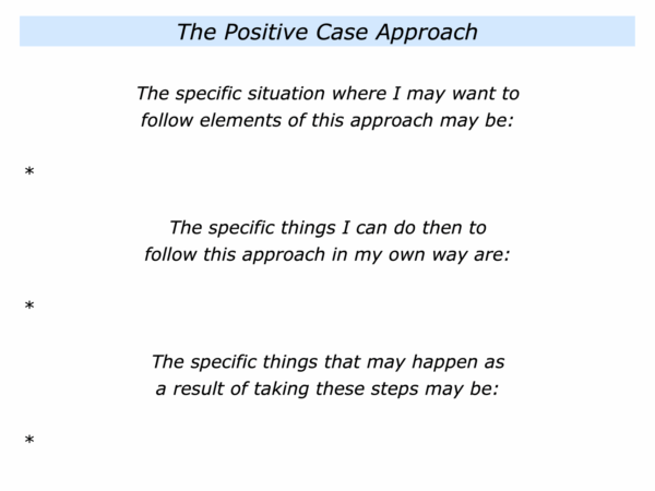 Looking ahead, can you think of a situation where you may want to follow elements of the positive case approach? If you wish, try tackling the exercise on this theme.