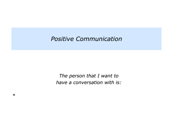 Let’s return to your own life and work. Looking ahead, can you think of a situation where you may want to follow elements of the positive communication approach? How can you do this in your own way?
