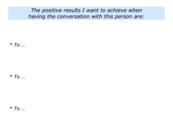 Who may be the person with whom you want to have a conversation? What may be the positive results you want to achieve? How can you do your best to achieve these results?