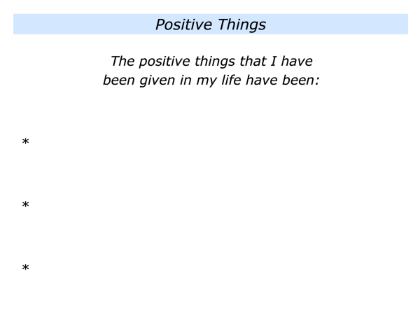 What are the positive things you have been given in your life? Different people give different answers to this question. Here are some of the things they mention.