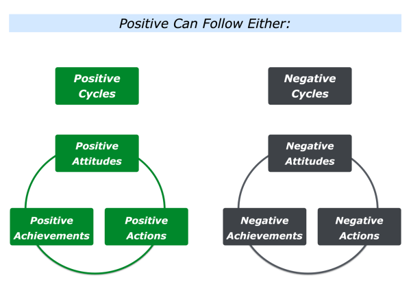 Looking back, can you think of a time when you aimed to follow a positive cycle? You may have chosen to have a positive attitude, translate this into positive actions and, as a result, achieve positive things.