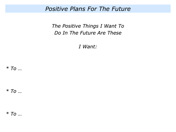 Some people focus on the positive things they want to do in the future. Much depends on their situation, of course, but here are some of topics that people may mention.