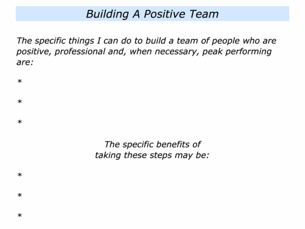 Imagine that you lead your present team. One approach is to have people who aim to be positive, professional and, when necessary, peak performing. This provides the basis for continuing to build a superb team.