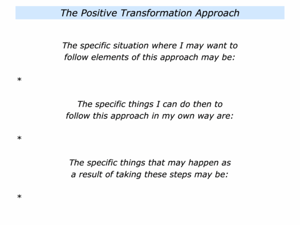 Imagine that people have taken these steps and shown how the positive transformation works. When appropriate, they can then replace the previous way that does not work with the new approach that does work.
