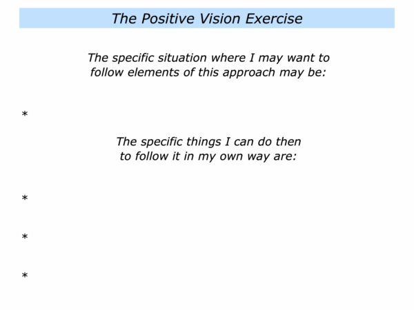 Let’s return to your own life and work. Looking ahead, can you think of a situation where you may want to follow elements of this approach? How can you do this in your own way?