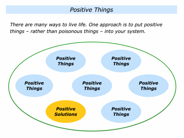 There are many ways to live life. One approach is to put positive things – rather than poisonous things – into your system. When appropriate, it is also to focus on finding positive solutions to challenges.
