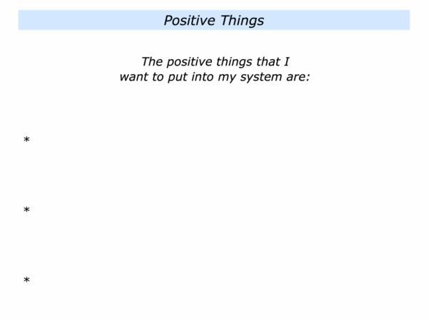 If you wish, try tackling the exercise on this theme. This invites you to describe the positive things that you want to put into your system.
