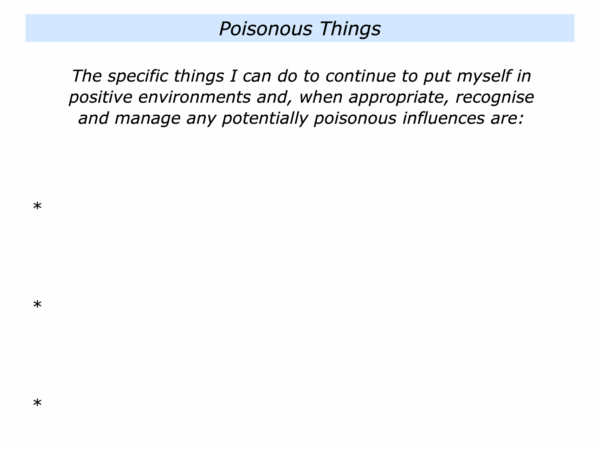 Imagine you want to follow elements of this approach. If you wish, describe what you can do to recognise and manage potentially poisonous influences.