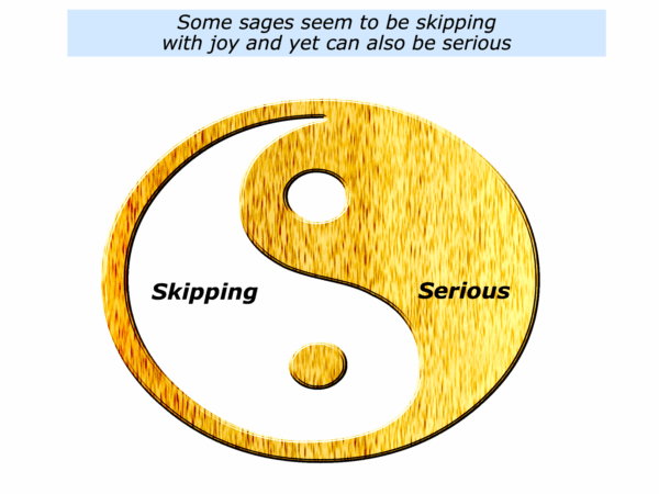 Some sages seem to be skipping with joy and yet can also be serious. They can sometimes be a bit mischievous and have a generous sense of humour.