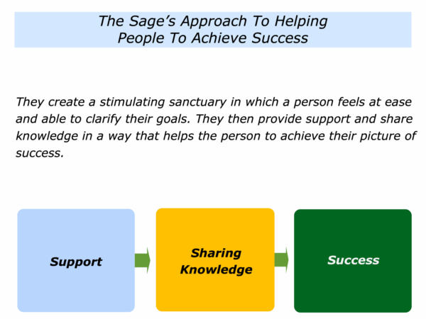 Sages then share knowledge, positive models and practical tools that the person can use in their own way. They bring the ideas to life by giving practical examples that resonate with the person.