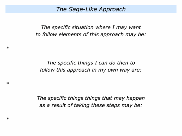 Let’s return to your own life and work. Looking ahead, can you think of a situation where you want to follow elements of the sage-like approach? How can you do this in your own way?