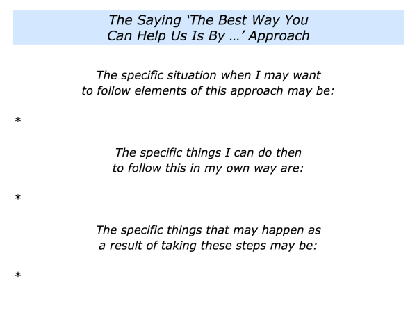 What may be the situation where you may want to take this approach? How could you follow it in your own way? What do you think may happen as a result of taking these steps?