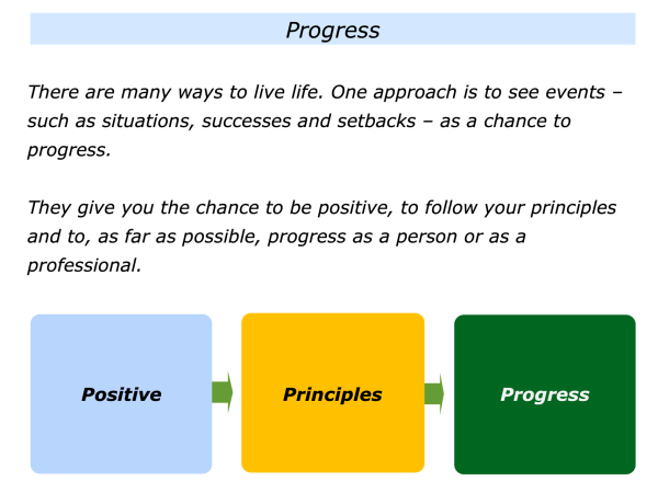 There are many ways to live life. One approach is to see events – such as situations, successes and setbacks you experiences in life – as a chance to progress.