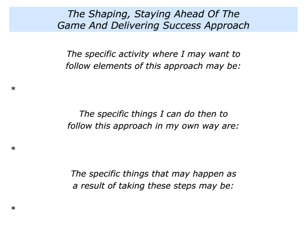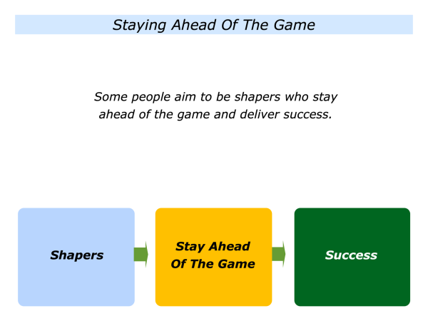 Shapers aim to stay ahead of the game in their chosen field. Different people do this in different ways. Some take the following steps.