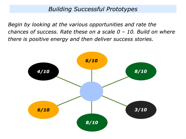 This final point is crucial. Imagine you work for a global business. Looking around the organisation, identify where you would stand a good chance of building a successful prototype.