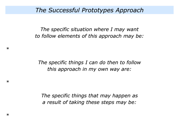 Let’s return to your own work. Looking ahead, can you think of a situation where you may want to follow elements of the building successful prototypes approach? How can you do this in your own way?