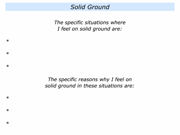 First, describe the specific situations where you feel on solid ground. Second, describe the specific reasons why you feel on solid ground in these situations.