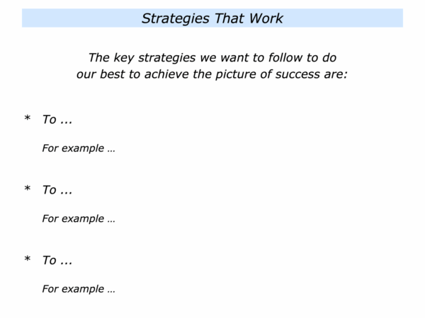 They make clear contracts about the key strategies to follow – those most likely to work – to increase the chances of achieving the picture of success.