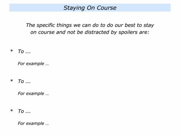 Imagine that a leader and their team are following the strategies and have got some successes. They also aim to stay on course rather than get distracted by spoilers.