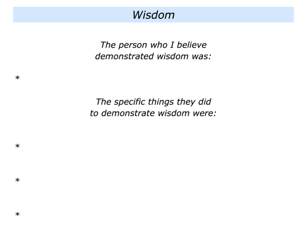 Let’s return to your own life. Looking back, can you think of a person who you believe demonstrated wisdom? How did they do this in their own way?